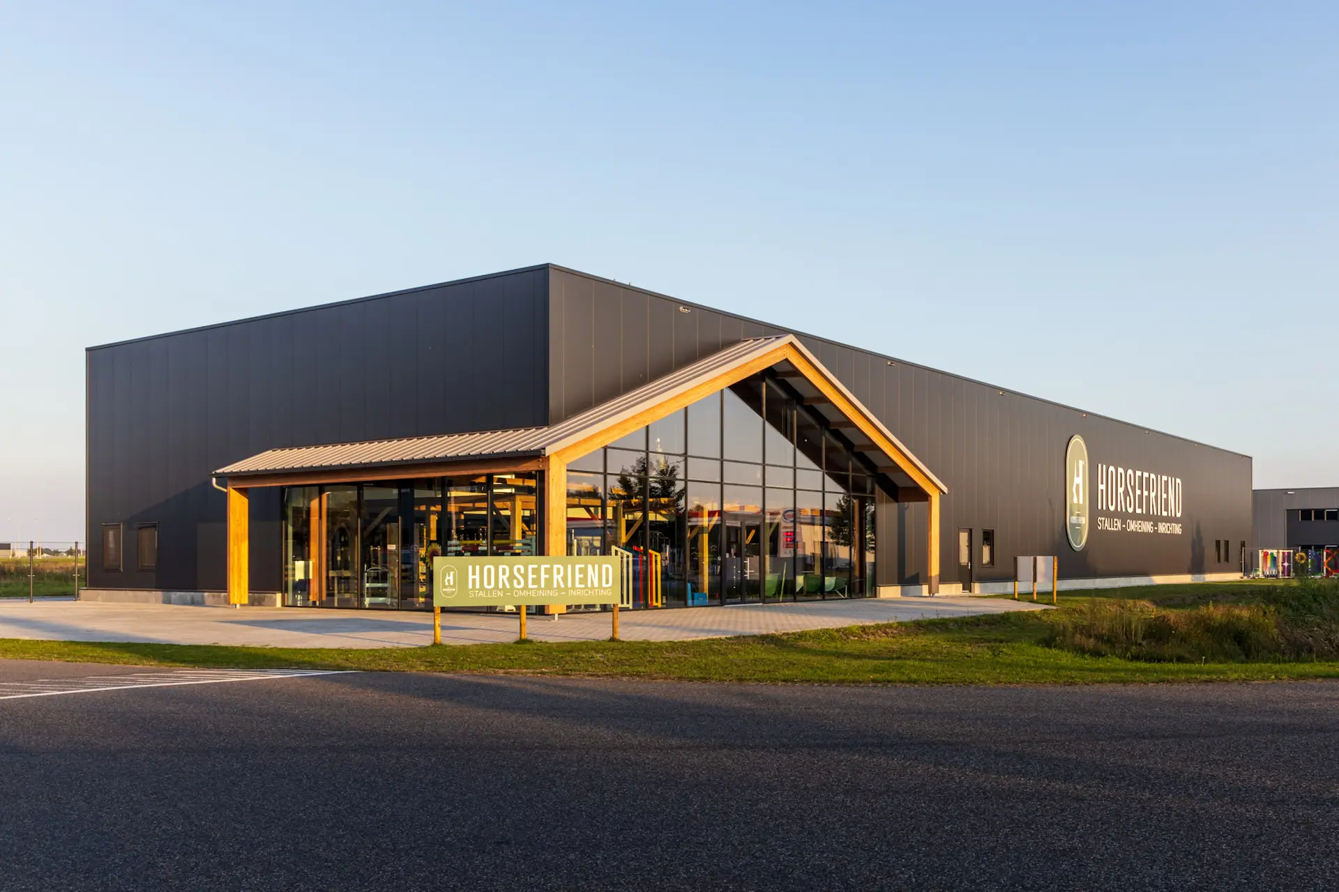 Voor Horsefriend realiseerde Webbink Bouw een functioneel en toekomstgericht bedrijfspand in Vriezenveen. Het gebouw is afgestemd op de dagelijkse praktijk binnen de paardenbranche en combineert werkbaarheid met een verzorgde uitstraling.
