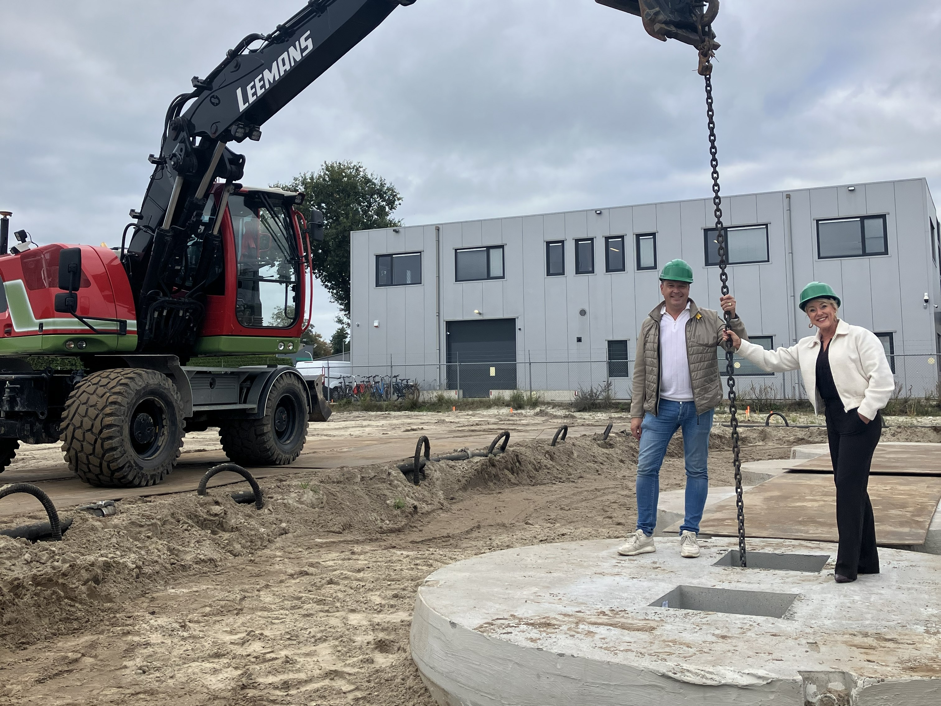 De putten voor de wasstraat zijn geplaatst door Leemans uit Vriezenveen en zij hebben daarmee het diepste punt van het bouwproject bereikt. Reden voor een feestelijke bijeenkomst waar Webbink Bouw natuurlijk ook aanwezig was.